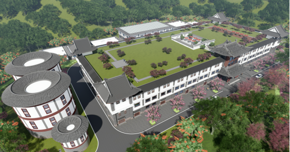 根据惠阳所处岭南的地域属客家地区,惠阳环境园在规划建设之初,就把岭南客家建筑特色与现代化垃圾焚烧电厂融合,并将其他子项目按此统一建筑风格进行规划设计,形成“客家古堡”式的综合生产区;将“客家围屋”等客家民居建筑元素与办公、生活建筑融合,并将具有环保教育基地、可持续发展和循环经济科普教育基地功能的“客家土楼”式的 “环保低碳馆”,和“客家围屋”式的政府监管办公室,以及其它配套设施遥相呼应,形成岭南客家“乔家大院”式的综合服务区。惠阳环境园在外型上创造性的让“岭南客家文化”与“垃圾文化”进行了一次“亲密的接触”,以“工匠精神”克服了工艺设计和建筑形态之间的大量矛盾及冲突,实现功能需求和古建筑外观的完美结合,开启垃圾处理也有文化的新篇章。这也是中国垃圾处理设施建设与中国传统建筑文化结合的首次大胆尝试。